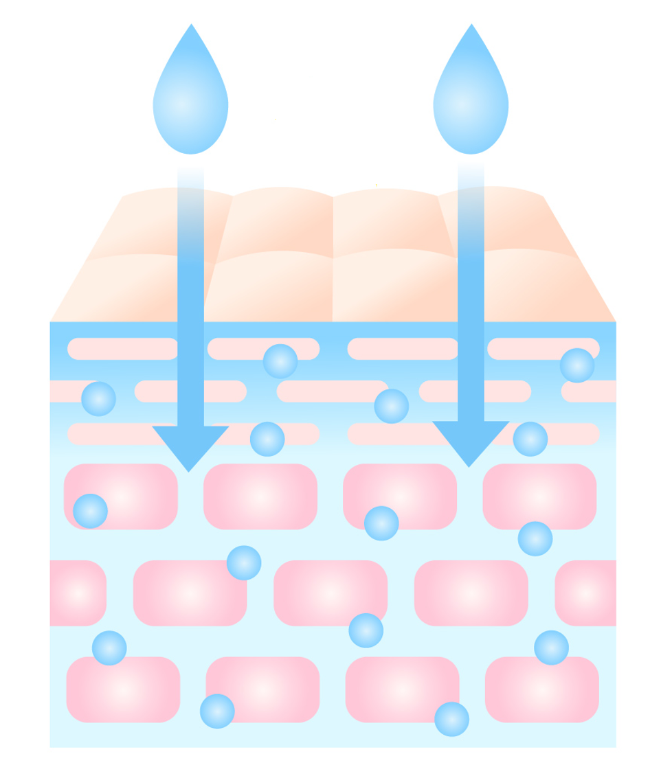 どんなに素晴らしい美容成分であっても、肌の奥までしっかり浸透しなければ十分な効果を発揮することができません。そこで当社では、美容成分をより深く、より効率よく、肌に届けるための独自の浸透促進方法を研究しています。さらに、成分がどこまで、どれだけ届いたかを客観的に捉える新たな浸透評価技術も開発しました。これによって、「確かな効果」の根拠となる科学的な裏付けのあるスキンケア製剤の開発を進めています。