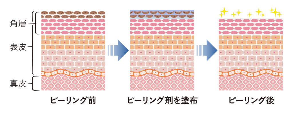 ピーリングとは、肌の表面に溜まった「不要な角質を剥がすお手入れ」のことです。